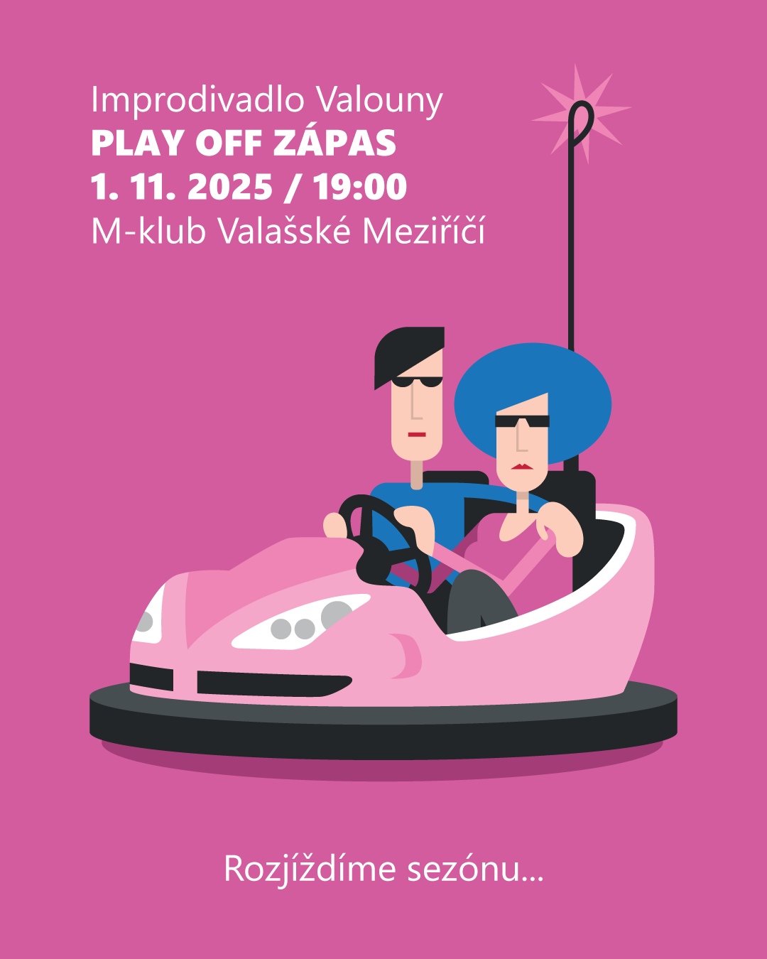 Valouny vyrážejí do boje! Na scéně se potkají týmy improvizátorů, kteří zabojují o vítězství v napínavém PLAY OFF večeru. Žádný scénář, jen čistá improvizace, humor a energie okamžiku. Přijď fandit, smát se a rozhodnout, kdo postoupí dál!
